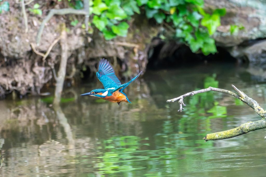 Den kleinen Eisvogel im blitzschnellen Flug zu erkennen, ist fast unmöglich, aber an seinem hellen, typischen Ruf kann man ihn meist schon vorher bemerken. Es klingt ein wenig wie ein lang gezogenes “ZiiiiiiI”.