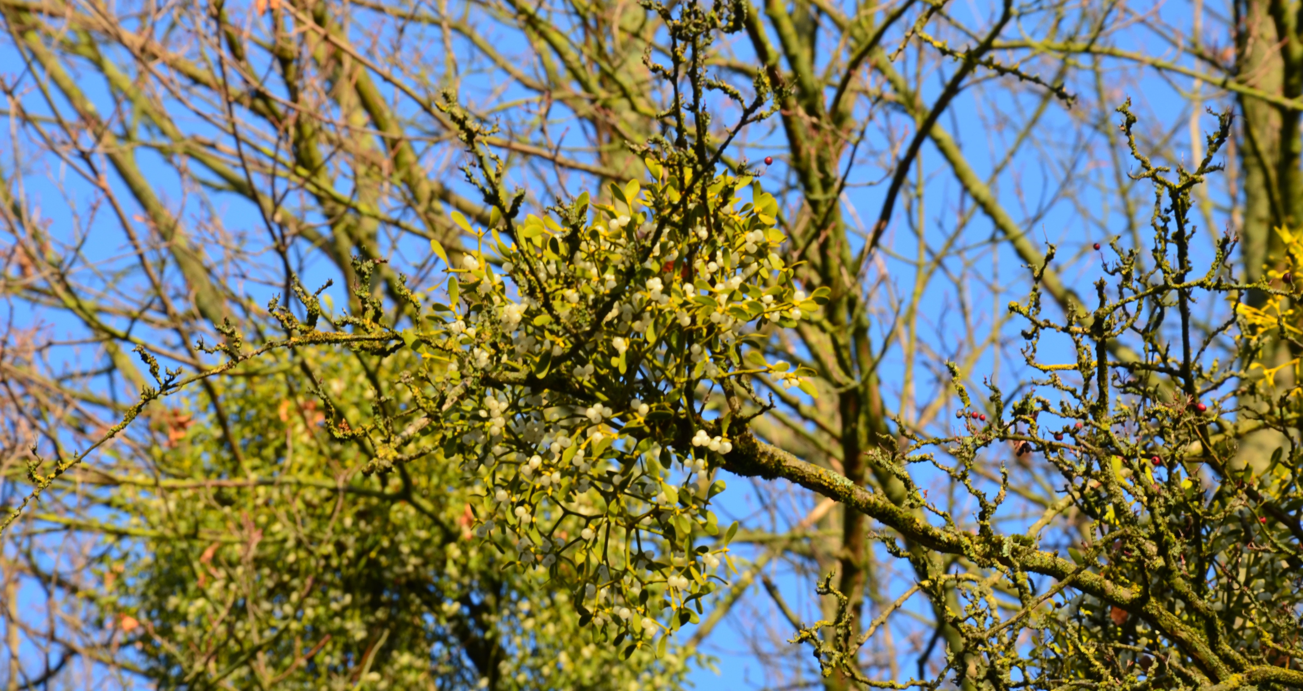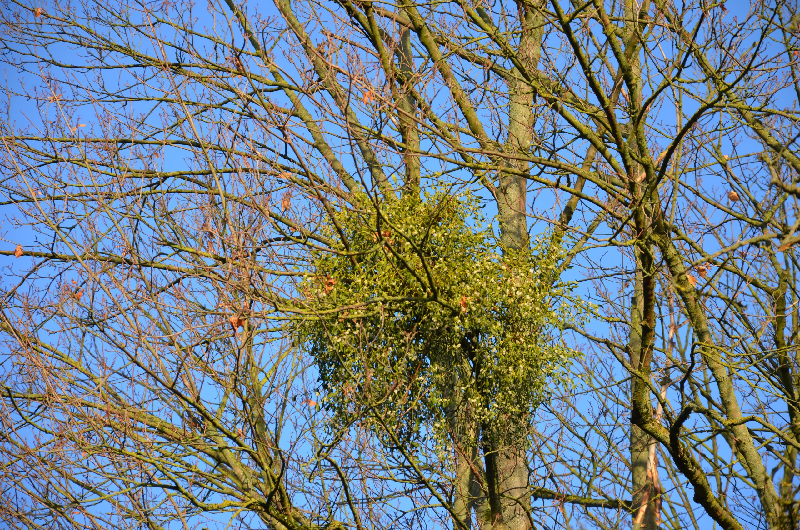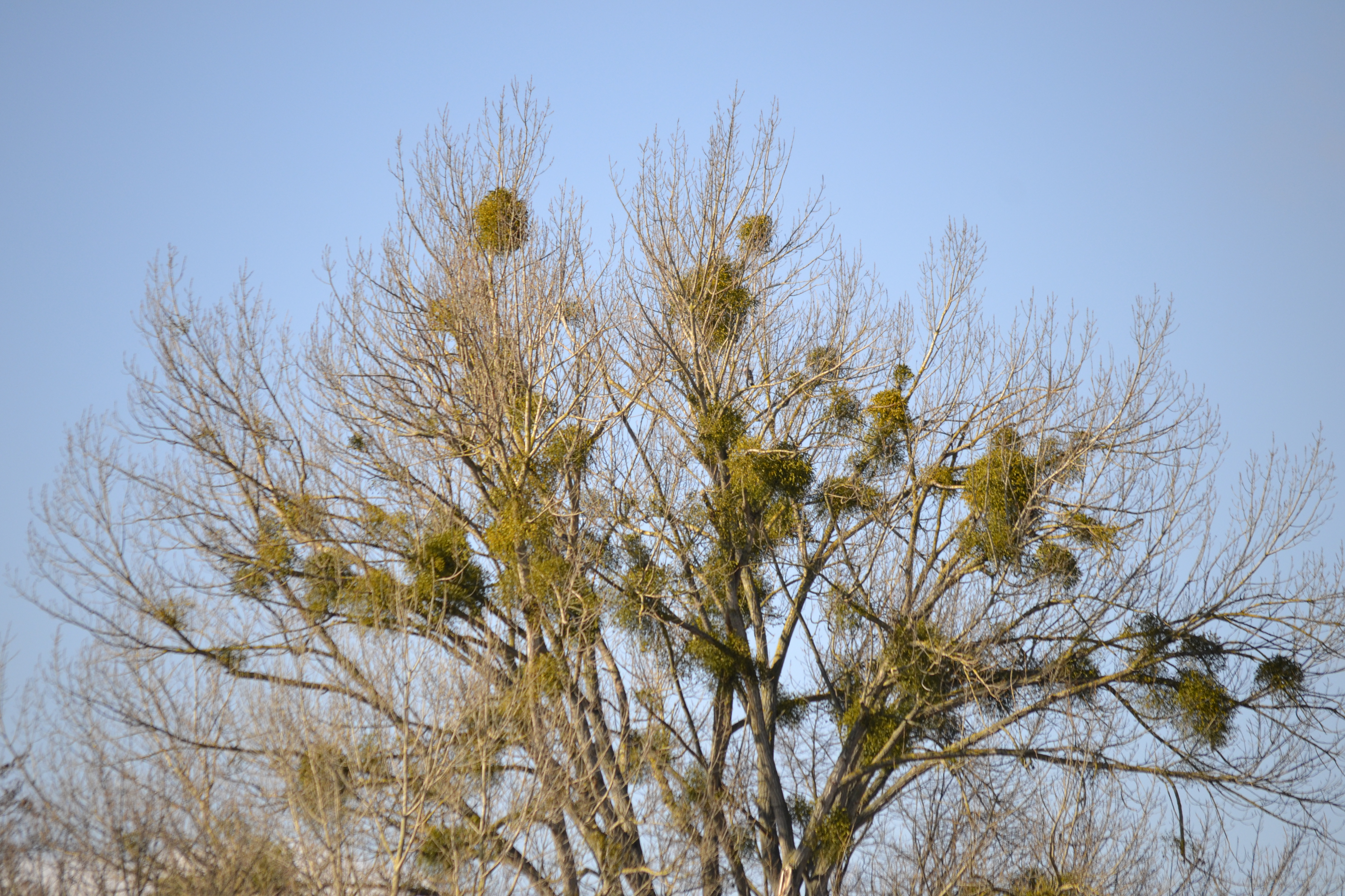 Winterkahler Laubbaum mit starkem Mistelbefall