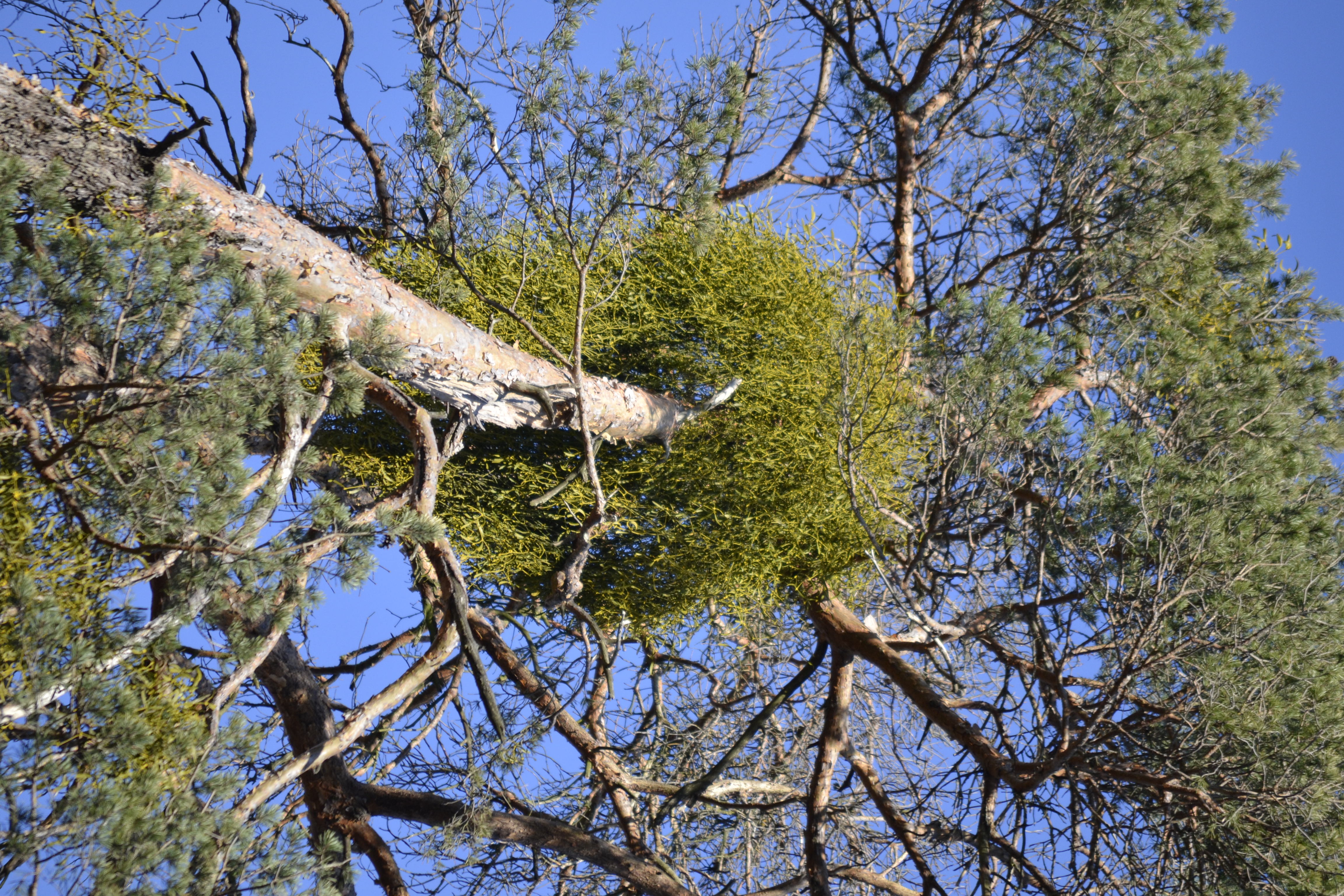 Kiefer mit Mistelbefall in der Krone