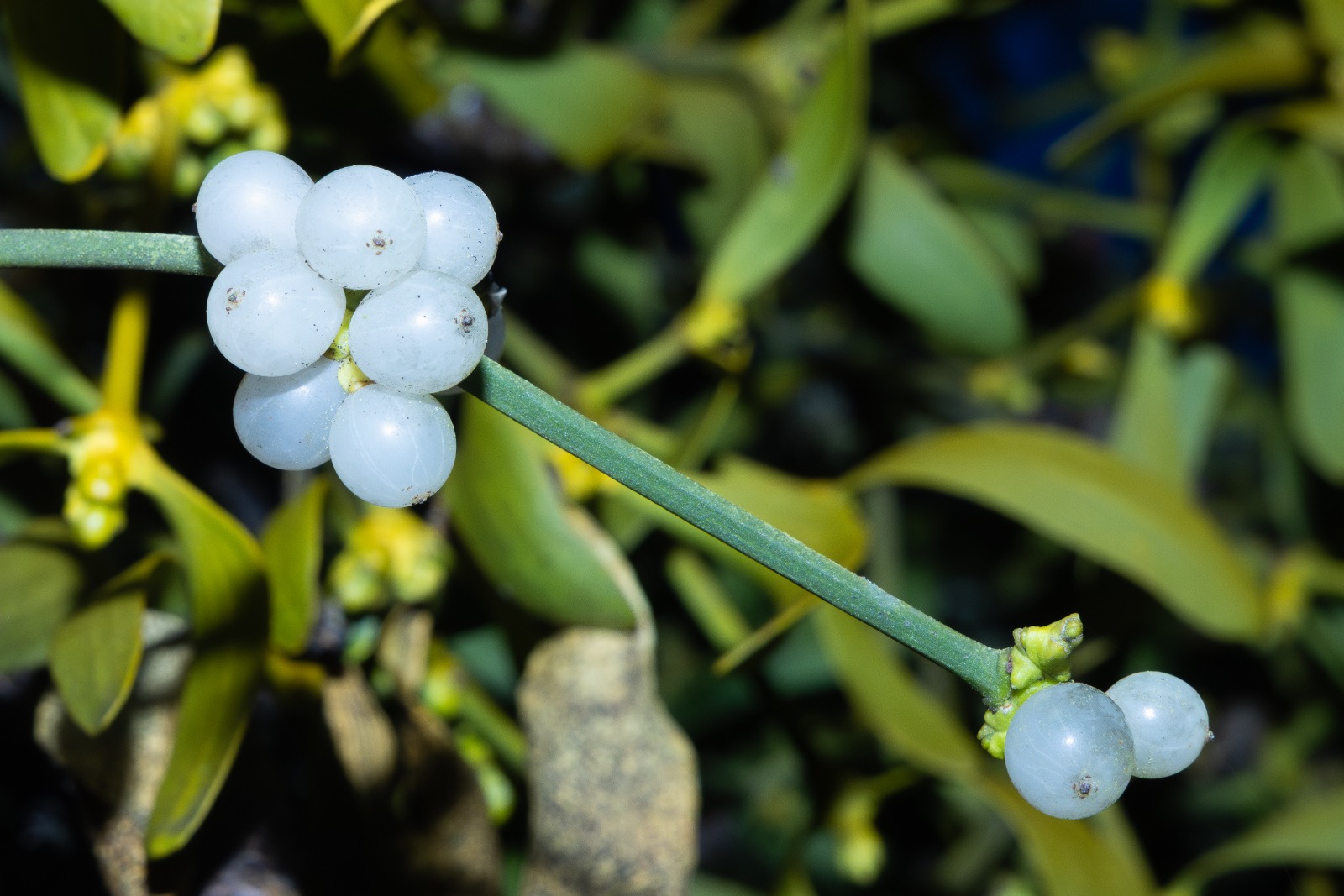 Die weißen Beere einer Mistel