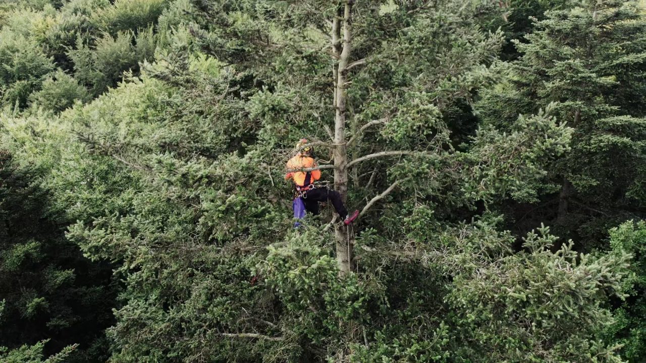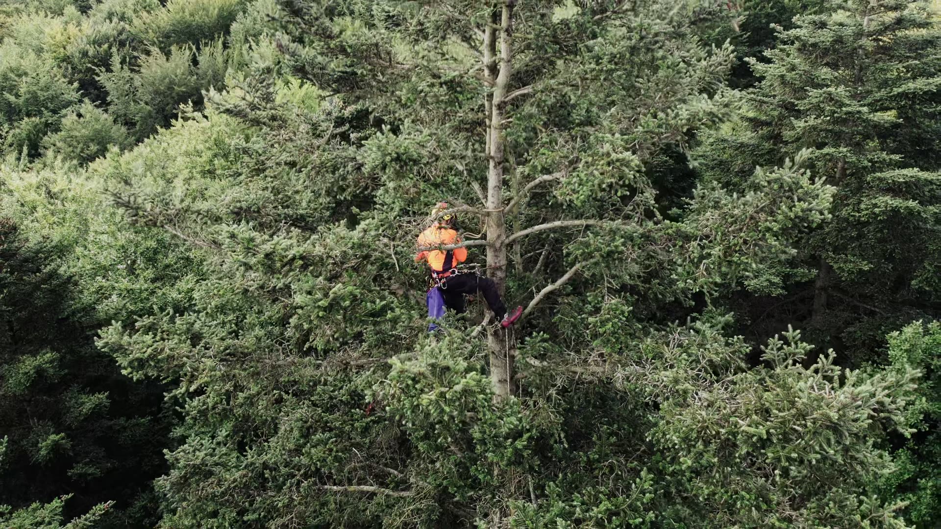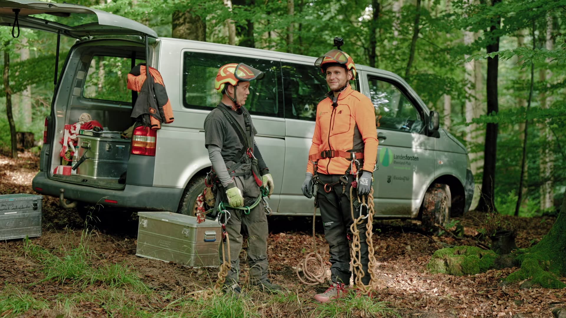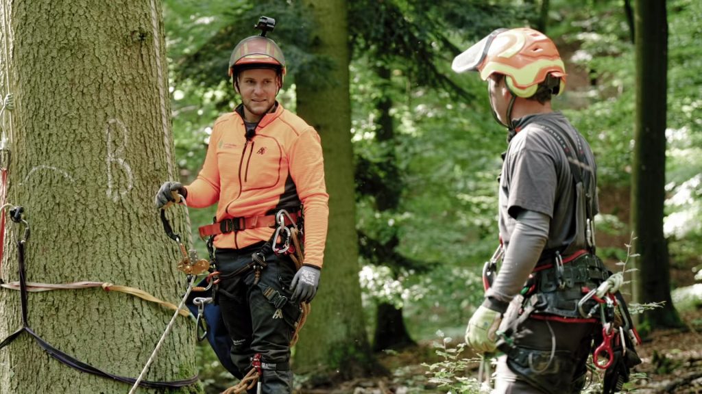 Teilweise kann eine Ernte von Saatgut auch am liegenden Stamm erfolgen. Am aufwändigsten und auch am gefährlichsten ist das Ernten von Saatgut am stehenden Stamm. Diese Arbeit leisten die Baumsteiger:innen, auch als Zapfenpflücker:innen bezeichnet. Um beispielsweise an die Zapfen der Weißtanne zu kommen muss man sich in schwindelige Höhen begeben – nämlich bis zur Krone des Baumes. Das sind mal eben ganz sportliche 35 bis 50 Meter! Die Baumsteiger:innen sammeln in der Krone die noch geschlossenen Zapfen, in denen sich der Samen befindet. Eine ausreichende Sicherung ist dafür unabdingbar. Einen Baumsteiger in Action könnt Ihr Euch in diesem Video ansehen.